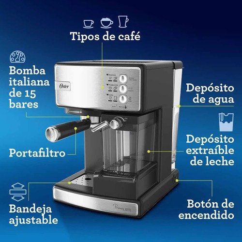 - Bomba italiana de 15 bares para una óptima extracción de café y crema.